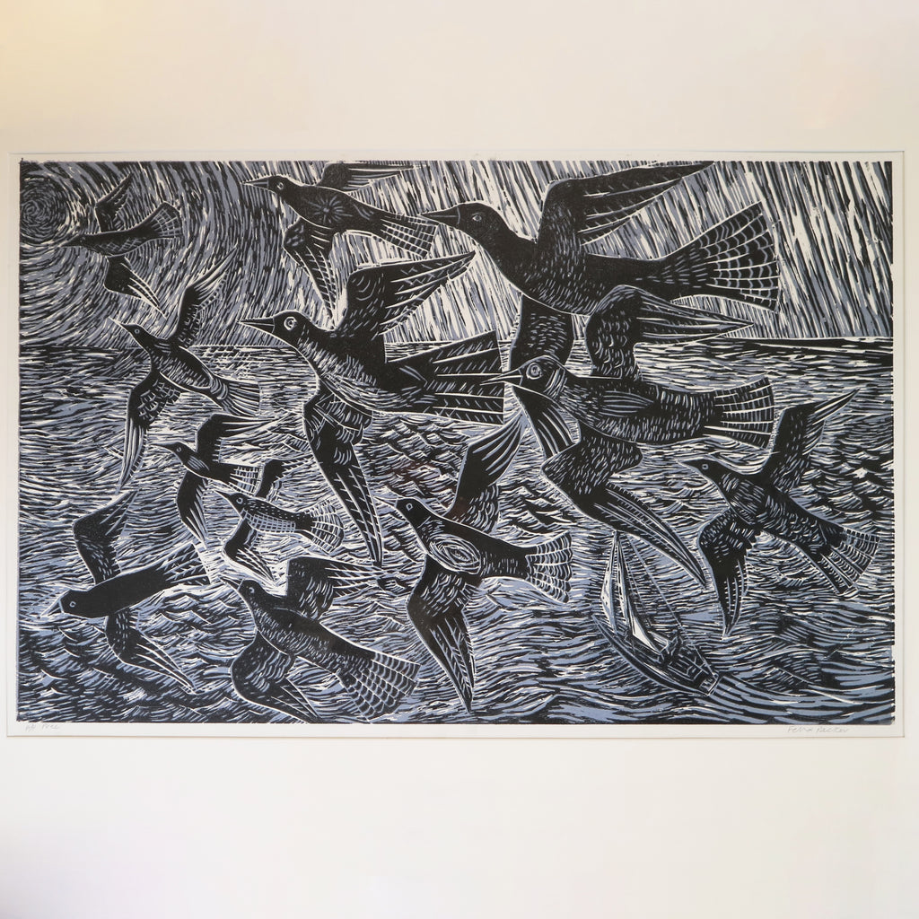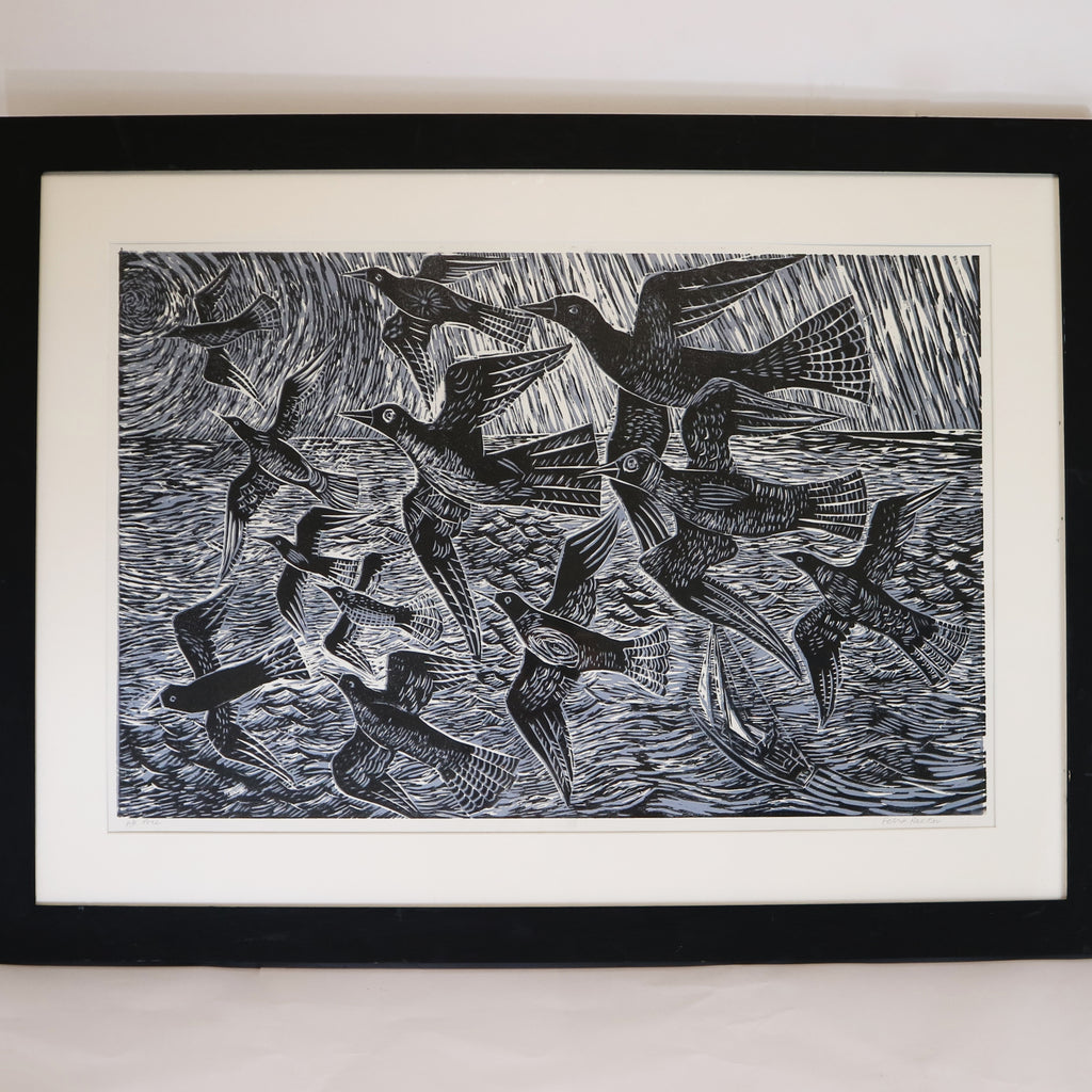 A framed woodcut by Felix Packer.