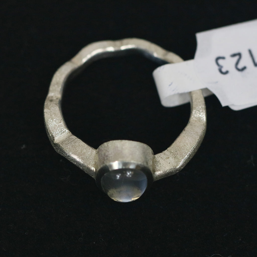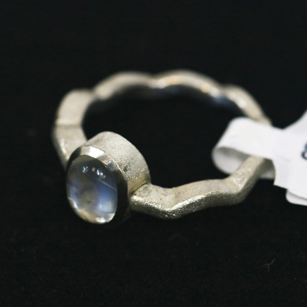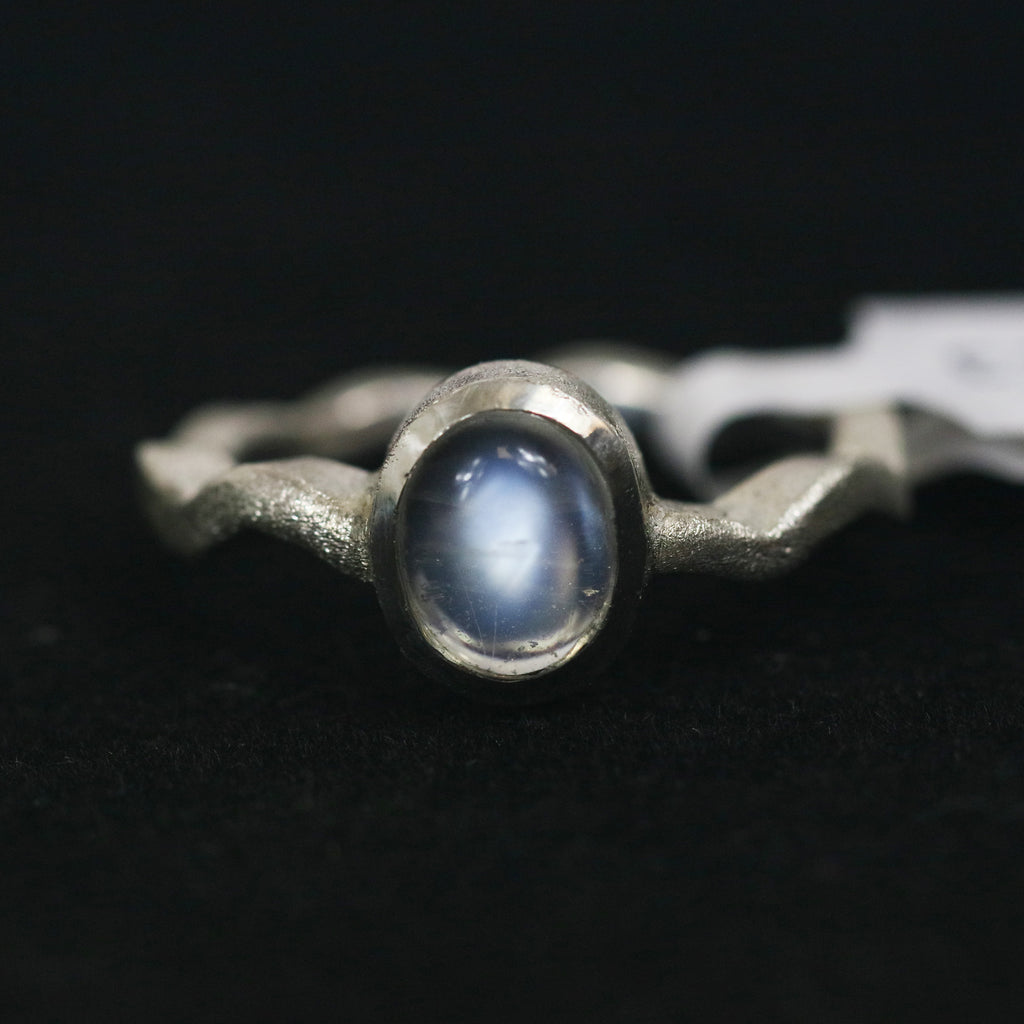 Moonstone embedded into a forged silver ring made by jewellery designer Martin Page.