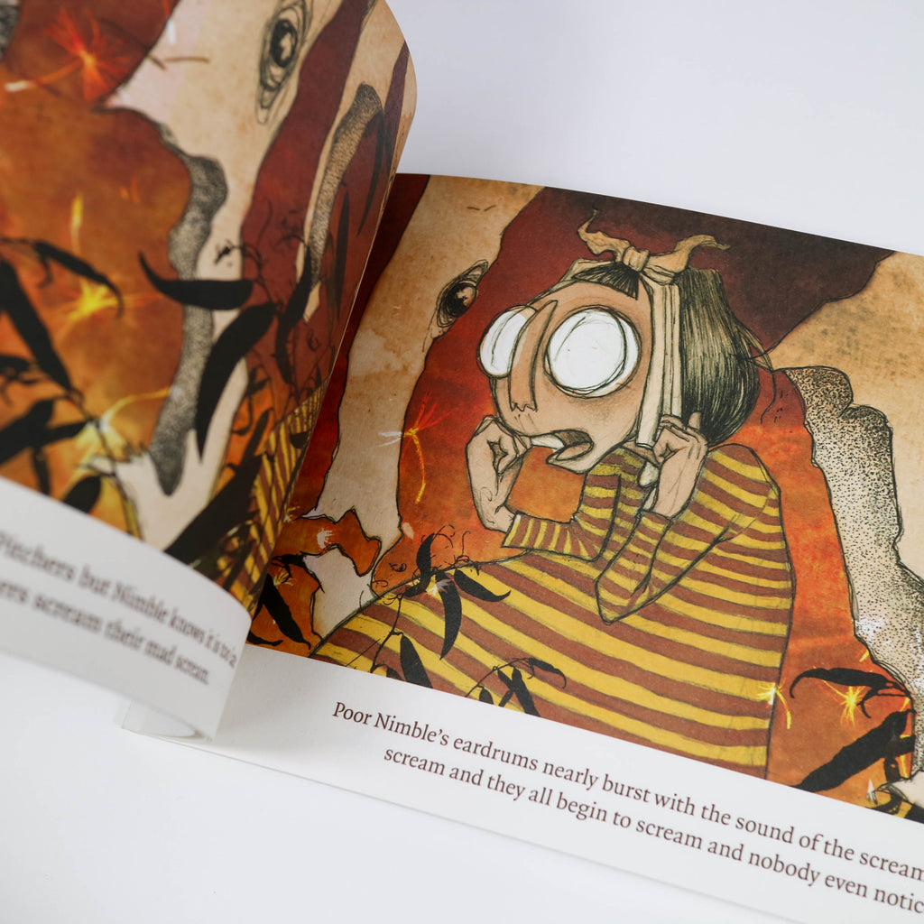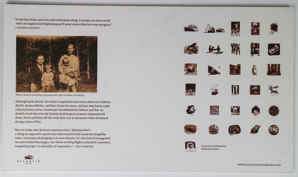 The Red Haze, a children’s book ‘for all ages’, describes the plight of two children, Nimble and Imble, and their friends, as they flee a deadly red haze which sweeps across their cold and frozen land (Finland) threatening to swallow them up. So fearful a land that even the Finnish mythological creatures migrated with them. Inspired by real events of two children: Martti, the author’s grandfather, and Ilma (Irma) his sister, and how they had to make a brave journey across a landscape overwhelmed by violence and fear. Martti and Ilma made this journey in the harsh winter of Finland during a time of War. Written in an absurdist flow of consciousness The Red Haze respectfully pays homage to the classic children’s book The World is Round by Gertrude Stein, originally published in 1939.